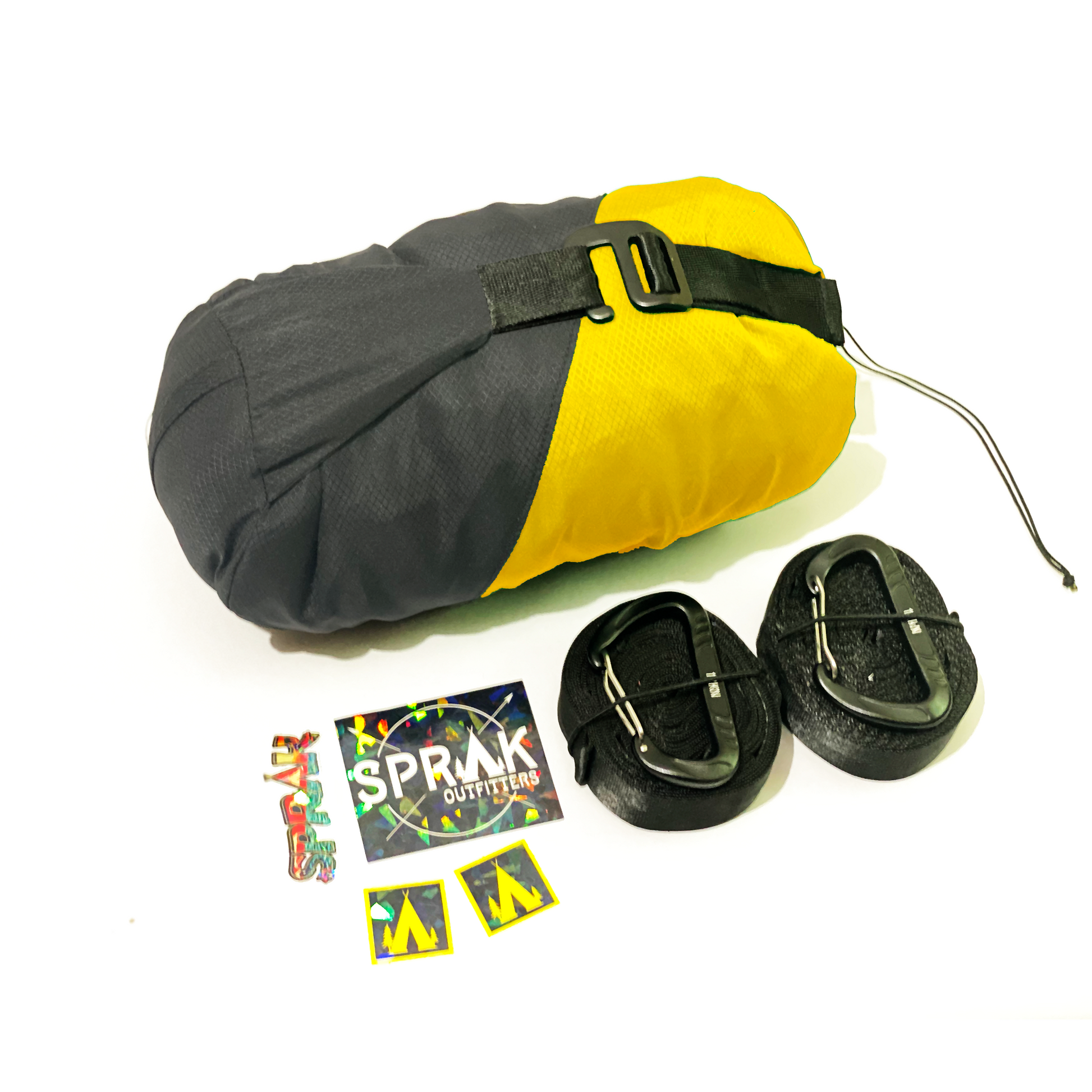 Included2 × 12 kN aluminum carabiners2 × 2.8 m adjustable tree straps (8 anchor loops)